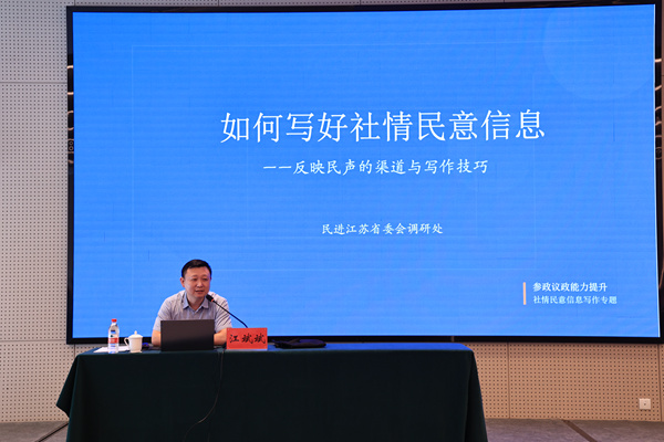 還邀請了民進省委會宣傳處處長許昆峰作《學習民進歷史 汲取奮進力量》會史講座,民進省委會調研處二級主任科員江斌斌作社情民意信息寫作技巧分享,民進常州市委會組宣處處長周二中作宣傳工作體會分享。
