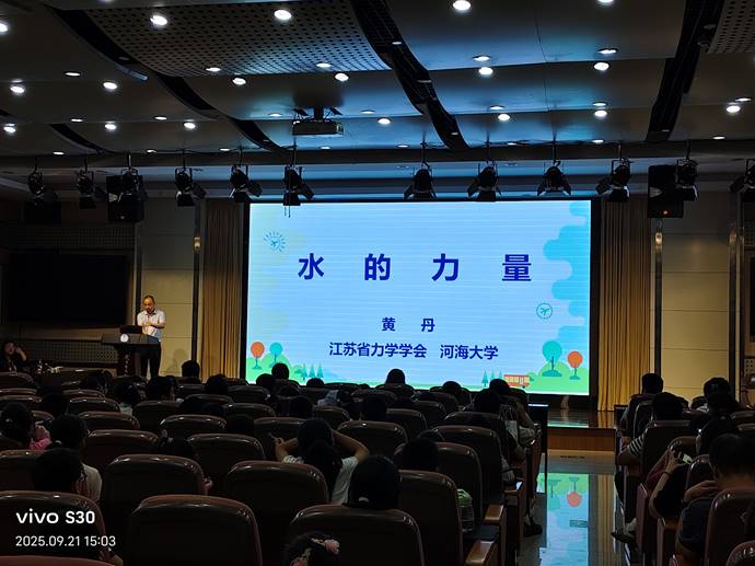 在首個“全國科普月”全面推進之際,民進河海大學支部支委黃丹教授開展一場主題為“水的力量”科普講座。現(xiàn)場吸引280余名青少年及家長參與,以趣味化、場景化的科普形式,讓抽象的力學知識走進大眾生活,成為國家科普政策落地見效的生動實踐。