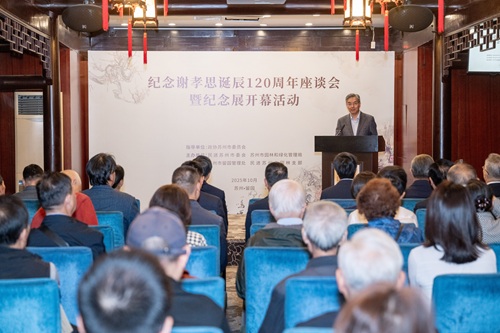 今年是民進成立80周年、民進會史工作主題年,也是民進蘇州市委會原主委謝孝思誕辰120周年。為紀念謝孝思為蘇州古城保護、世界文化遺產守護作出的杰出貢獻,10月20日下午,民進蘇州市委會在留園舉辦紀念謝孝思誕辰120周年座談會暨紀念展開幕活動。本次活動由政協蘇州市委員會指導,民進蘇州市委會、蘇州市園林和綠化管理局主辦,蘇州市留園管理處、民進蘇州市園林支部協辦。